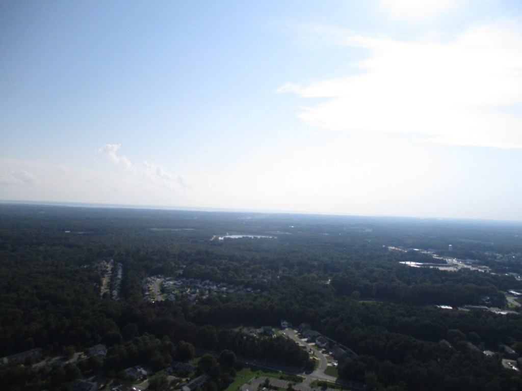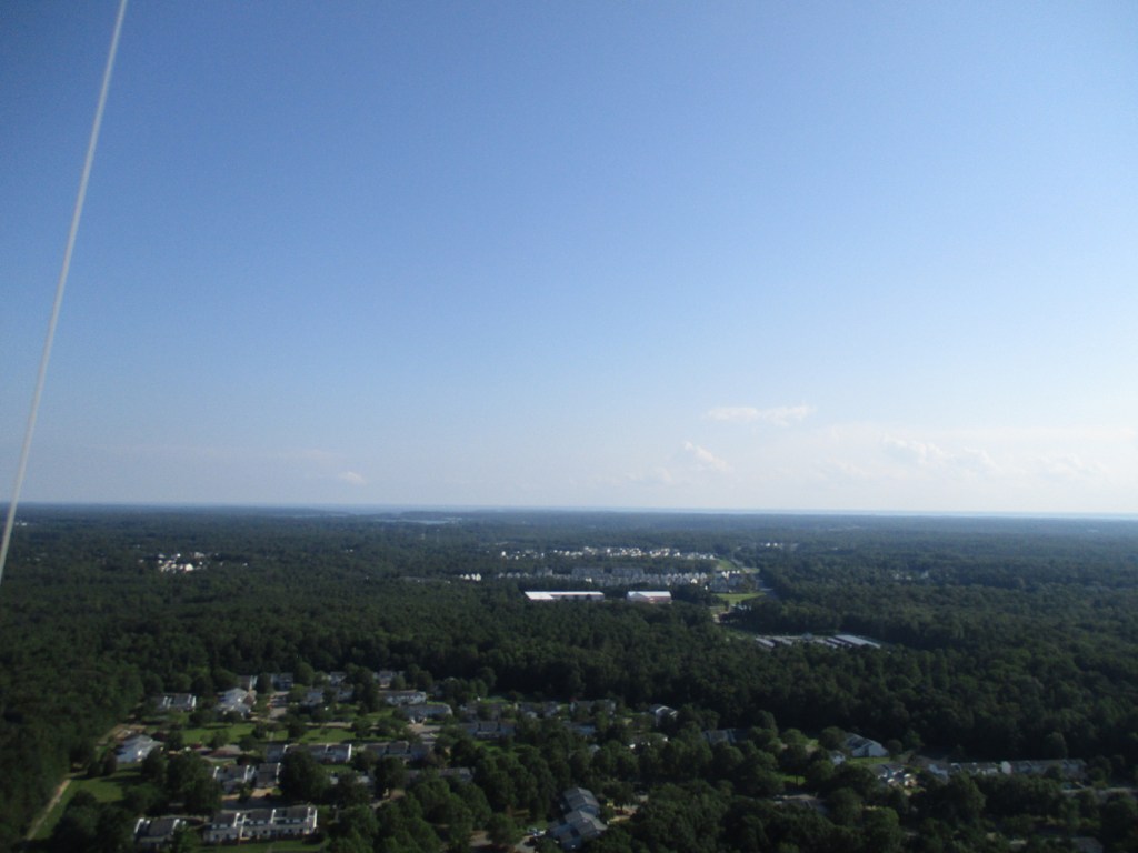 The pictures themselves turned out a little disappointing. They were definitely high, but the quality wasn’t as good as I had hoped for. I realized that this was due to a few problems. First, the shutter speed wasn’t fast enough. The maximum speed was less than 1/1000 sec, which resulted in a lot of the pictures having motion blur. Second, the camera being attached very close to the kite, which meant that any motion of the kite was transferred right to the rig. Having a relatively slow shutter speed only made that worse. Third, with the camera pointed level, the it had to keep adjusting the exposure as it swung towards the bright sky and then the darker ground below. As a result, lots of the photos were overexposed or underexposed. And finally, I was trying to take pictures towards the sun, which just made properly exposing the photos more difficult. A couple of the pictures did turn out okay though, as you can see above and below.