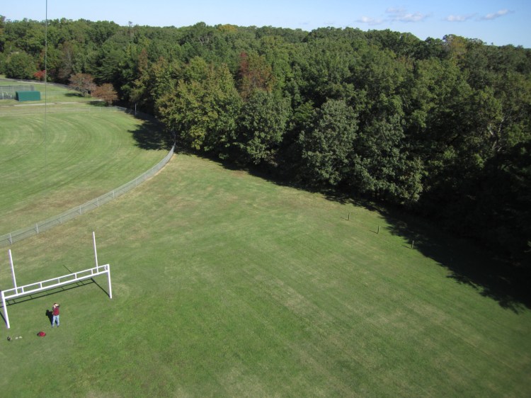 A couple of the pictures I liked from the session are shown in the gallery above. In addition to being close to the upper end of this kite’s wind range, the wind direction was also changing periodically, and I found myself walking back and forth over the width of the soccer field to try to keep the kite away from the trees on one side and the parking lot on the other. In the second picture above, you can see me far below standing right at the edge of the field — the wind must have been coming more from the west at that point. The leaves on some of the trees were just starting to turn colors, too, adding some character. Maybe in another week or two they will be brighter.