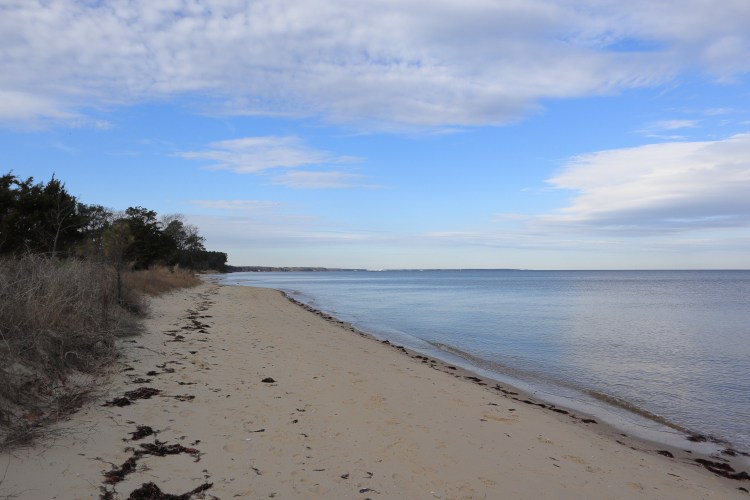 Since it was winter, there was no fee to use the beach, but the main parking area was closed, meaning I had to walk more than 0.6 miles from my car to the beach. That’s not so easy with my kites and KAP gear, especially my 30-lb bag of rocks! It was a pretty walk, though. Down below are pictures of the walk and the beach itself.
