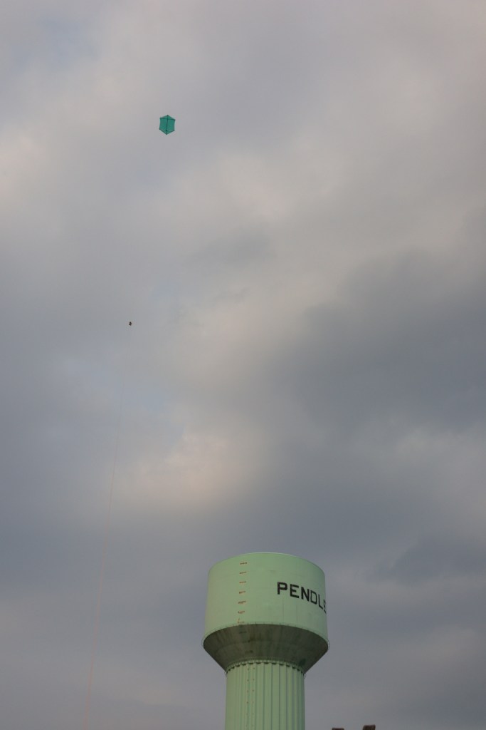 The flight was smooth and easy, which I’ve come to expect with the exceptionally stable Rokker kite. I got the camera up in the air with the KAP rig and walked around to different sides of the tower while bringing the camera to different heights. I did have to avoid the flying on one side of the tower due to the presence of the road and power lines. As it turned out, I overestimated the height of the tower or maybe underestimated the altitude of the camera, because most of the pictures didn’t have the tower in them at all! Nevertheless, I still got plenty of good ones, as you can see below. Believe it or not, the hazy skies in these pictures were due to wildfires on the west coast, clear across the country. Still, light was good enough to get some clear images of the water tower.