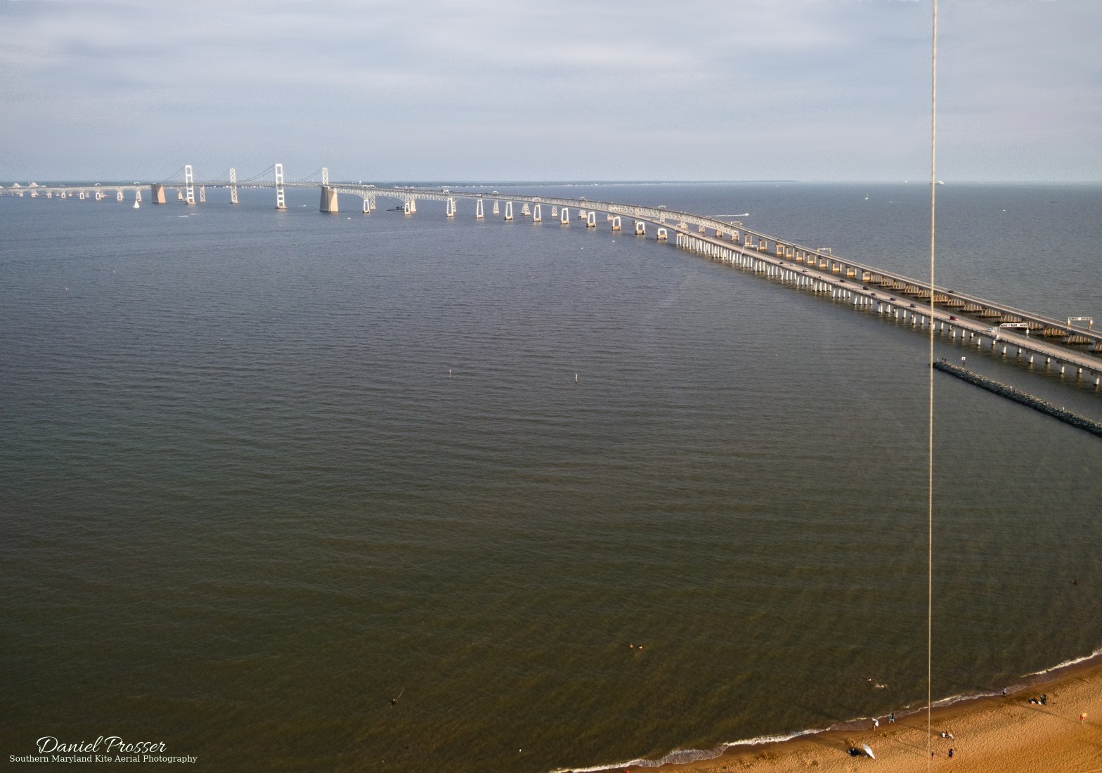 This time, the wind remained steady for about 15 minutes, giving me just enough time to release most of my line and snap some pictures. Since I had been here before, I knew that the view towards the bridge was the best, so I didn’t bother trying to take any others. There ended up not being enough time anyway, because the wind died once again, forcing me to end the session. The rig landed in the sand a second time, this time tangling the two lines hopelessly together. I didn’t mind, since I was happy to beat my own expectations and get a very nice kite aerial photo of Southern Maryland in fall colors and soft November light. I have had plenty of unsuccessful KAP sessions, but this time persistence paid off!
